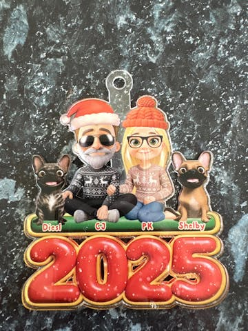 Great company! They where witty and market well, but they exceeded my expectations. We love the acrylic ornament as it depicts us and our three fur babies perfectly! Thank you! Merry Christmas!